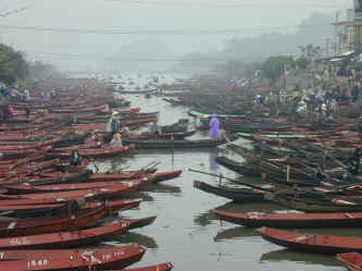On our second day, we made a trip to the Perfume Pagoda, a series of Buddhist temples visited by thousands upon thousands of Buddhists each year, particularly during the 3 month period from January to March (coinciding with the Lunar New Year). The temples are accessible only by boat, none of which are motorized, explaining why this small harbor is choked with them.
