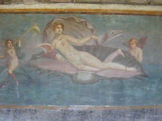 A fresco of the Goddess, Venus, found in one of the luxurious homes of Pompeii.