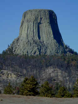 This is Devils Tower. Standing at 867 feet, this gigantic volcanic rock was formed more than 50 million years ago. Director Steven Spielberg made Devils Tower the landing spot for aliens from outer space in Close Encounters (for those of you too young to understand the joke above).